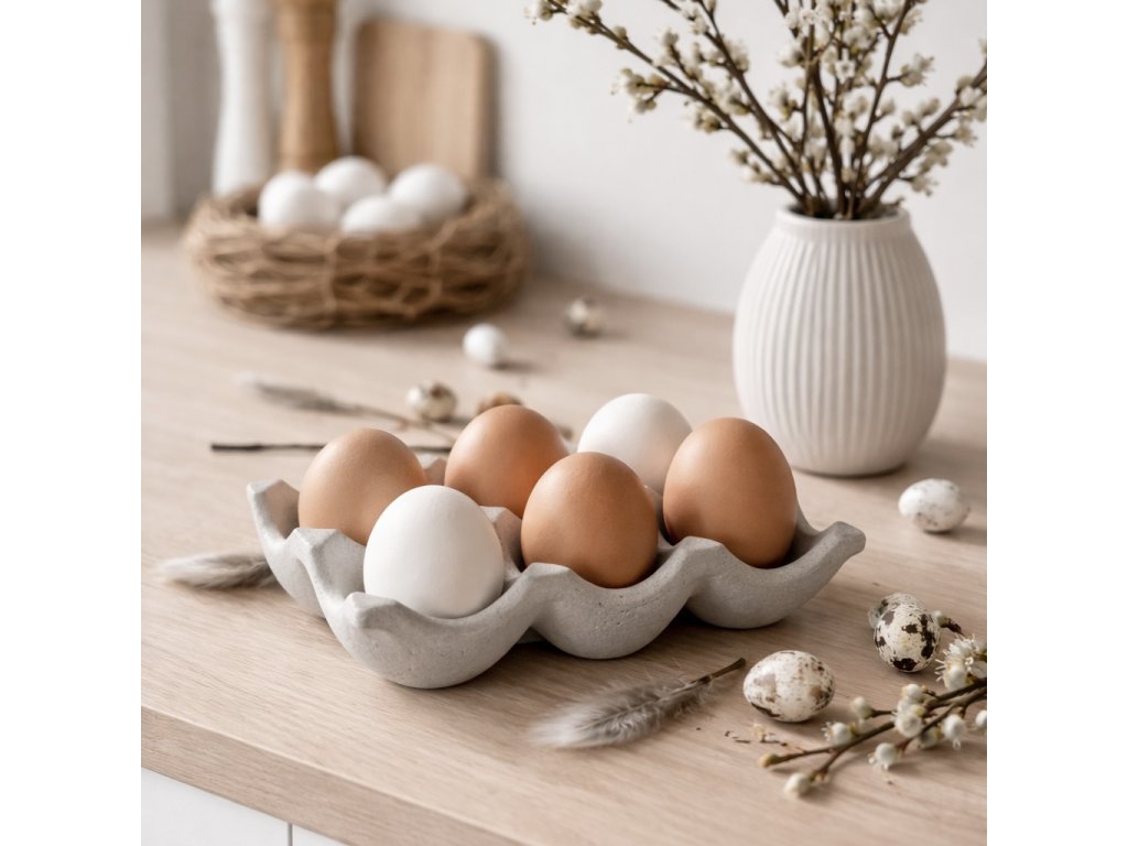 Betonové plato na vejce – designový stojánek pro 6 vajec