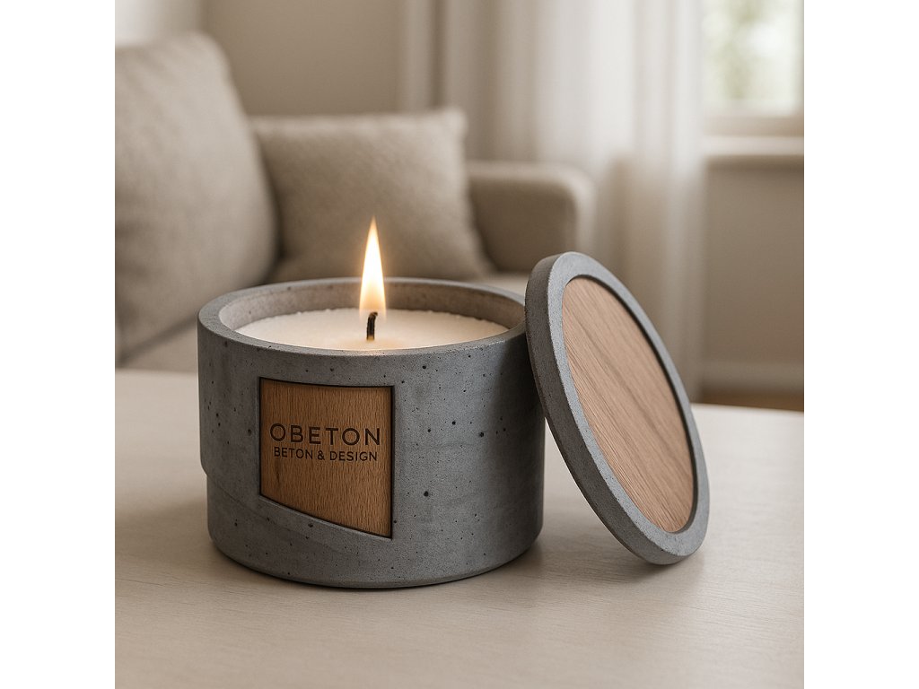 Sypaná svíčka v betonu Evan 450g - vesmírně šedá/ořech