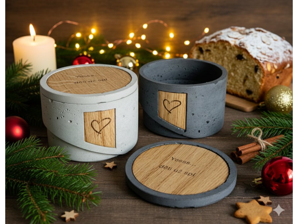 Balení obsahuje: betonovou dózu vč. víčka, 450g sypaného vosku, 20 kusů knotů.