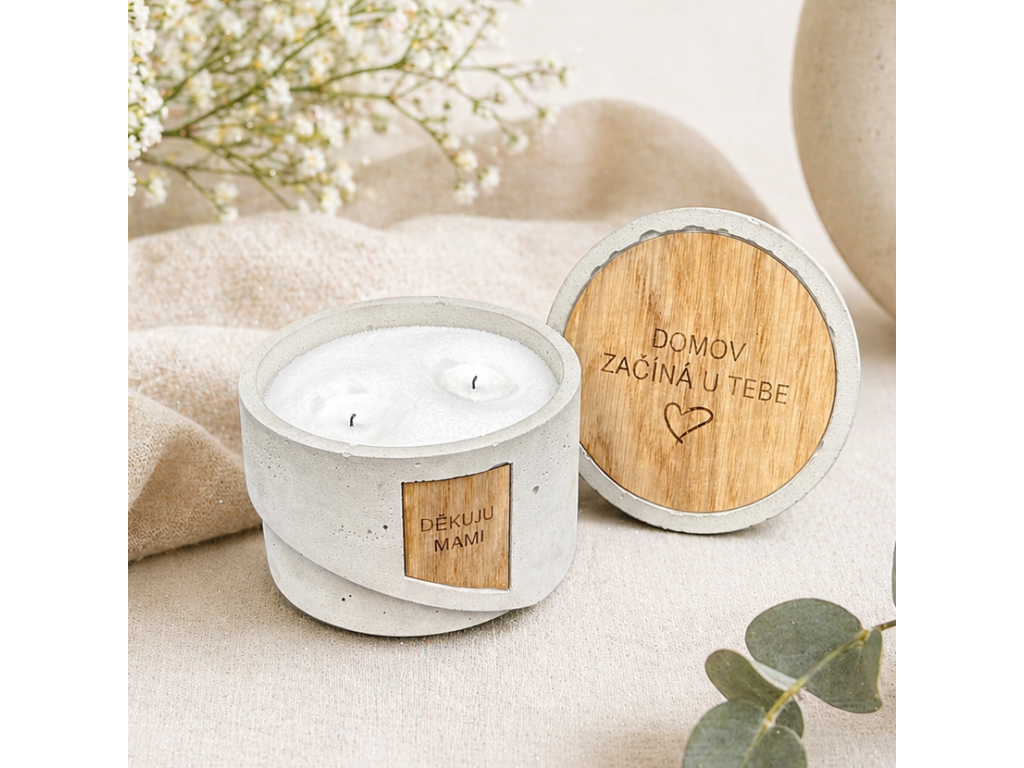 Sypaná svíčka v betonu DOMOV 450g - přírodní/dub