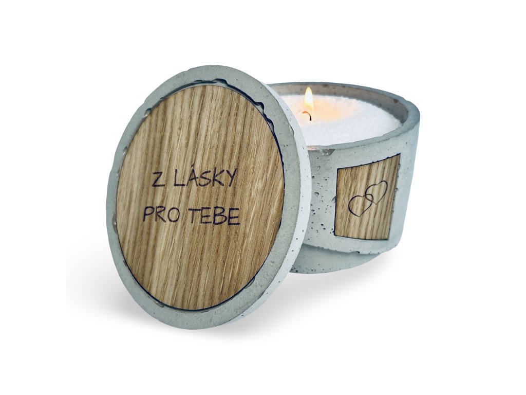 Valentýnská sypaná svíčka v betonu "Pro Tebe" 450g - přírodní/dub