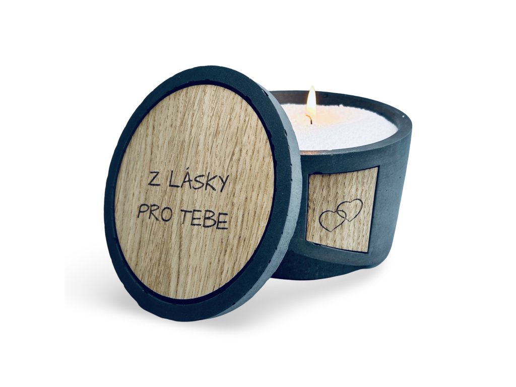 Valentýnská sypaná svíčka v betonu "Pro Tebe" 450g - vesmírně šedá/dub