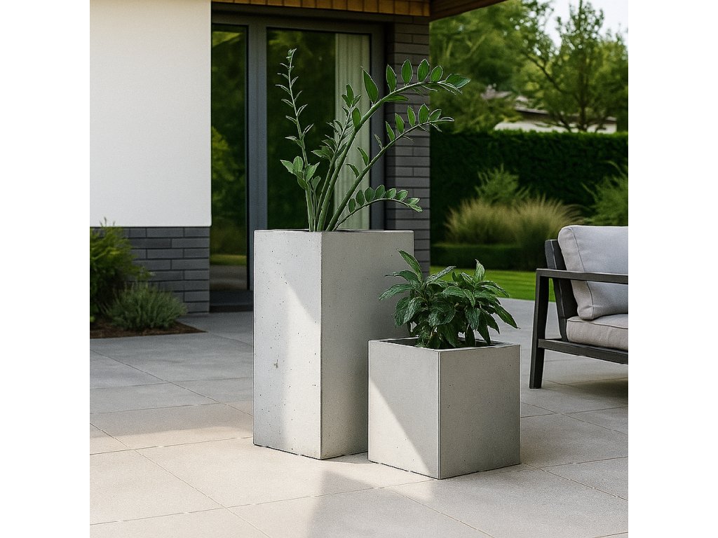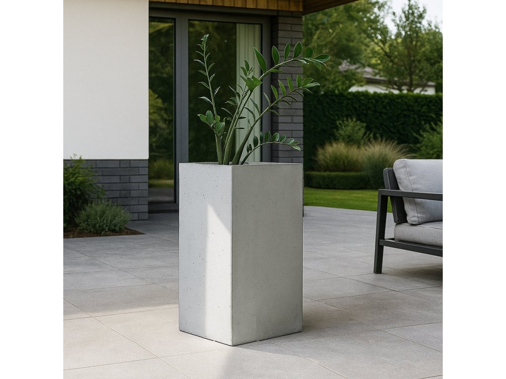 Květináč je složený ze čtyř betonových dílců, které jednoduše spojíte dohromady. Montáž trvá přibližně 15 minut a zvládne ji i jedna osoba (doporučujeme dvě pro pohodlnější manipulaci). Spodní strana každé desky je opatřena plastovými nožičkami, které usnadňují posouvání květináče a chrání podlahu před poškrábáním.